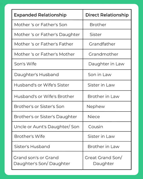 blood relation types chart reasoning tricks questions