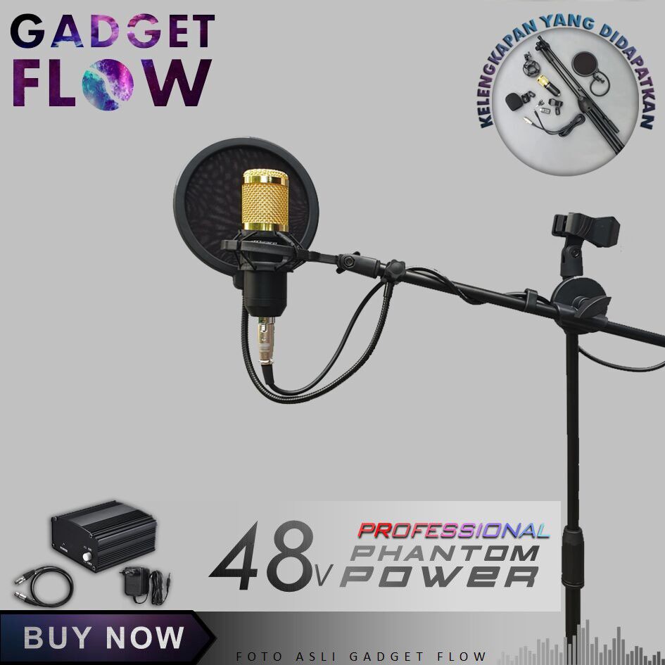 jual paket komplit mic bm stand berdiri microphone bm phantom