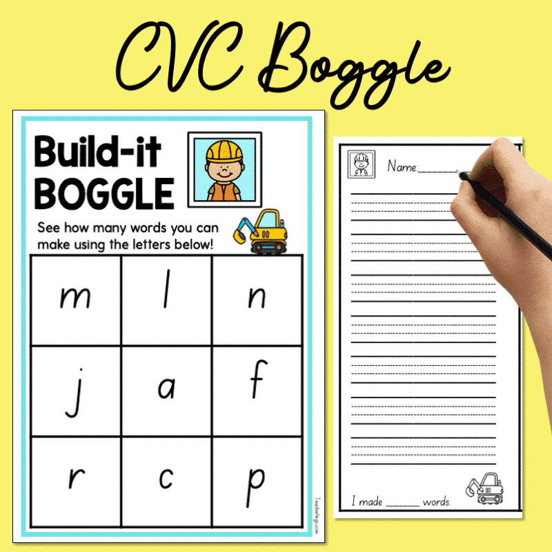 cvc boggle game cards recording sheet teachie tings time saving