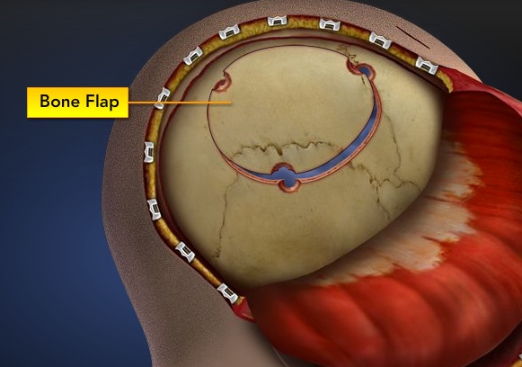 skull bone flap removal dural opening craniotomy part