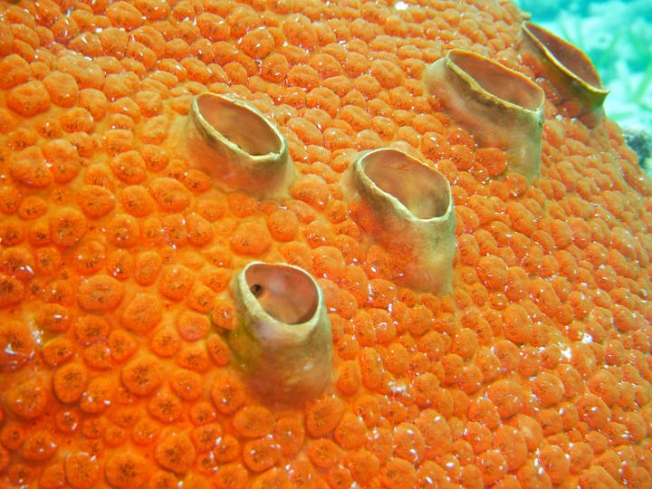 orange boring sponge partially covered silt vita aquatica