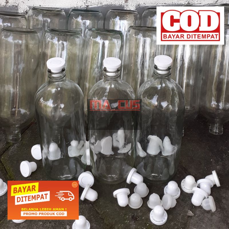 jual botol kaca bening bolles botol bensin liter tutup plug