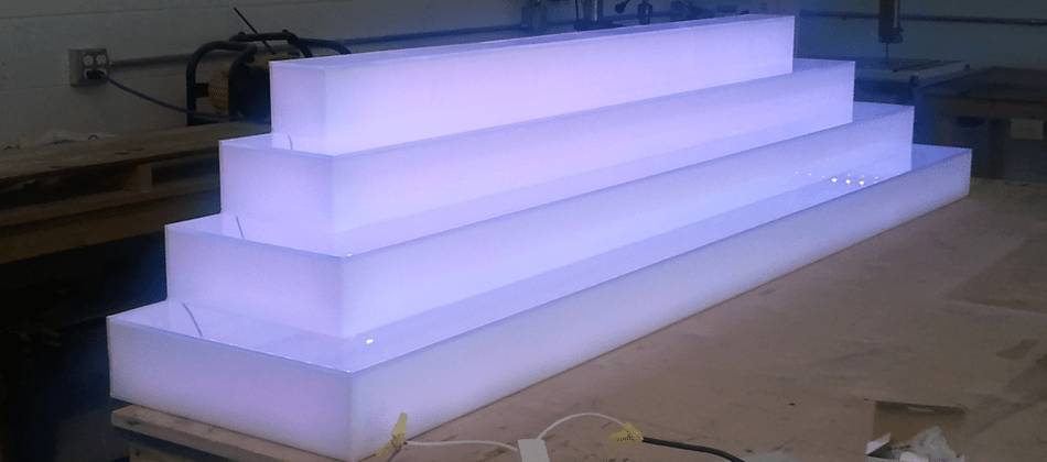 custom acrylic led lighted liquor bottle step display shelf