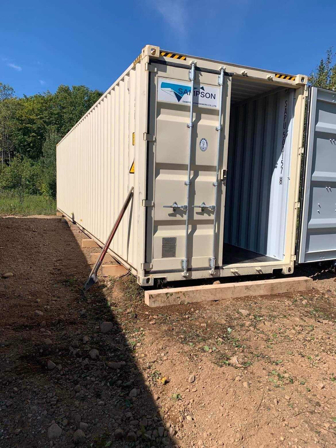 ship cargo container side view open doors full cardboard