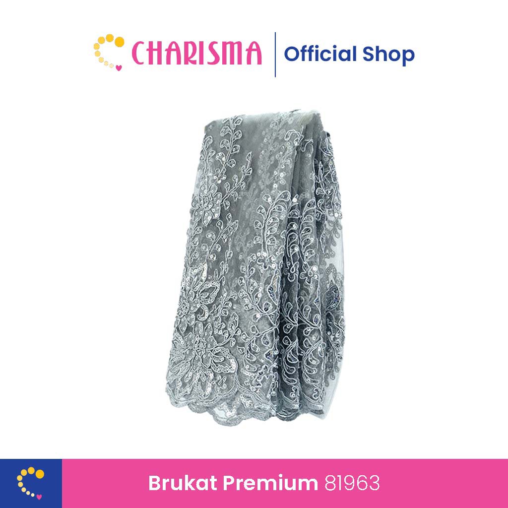 jual charisma bahan kain brukat glitter premium brukat bunga abu abu