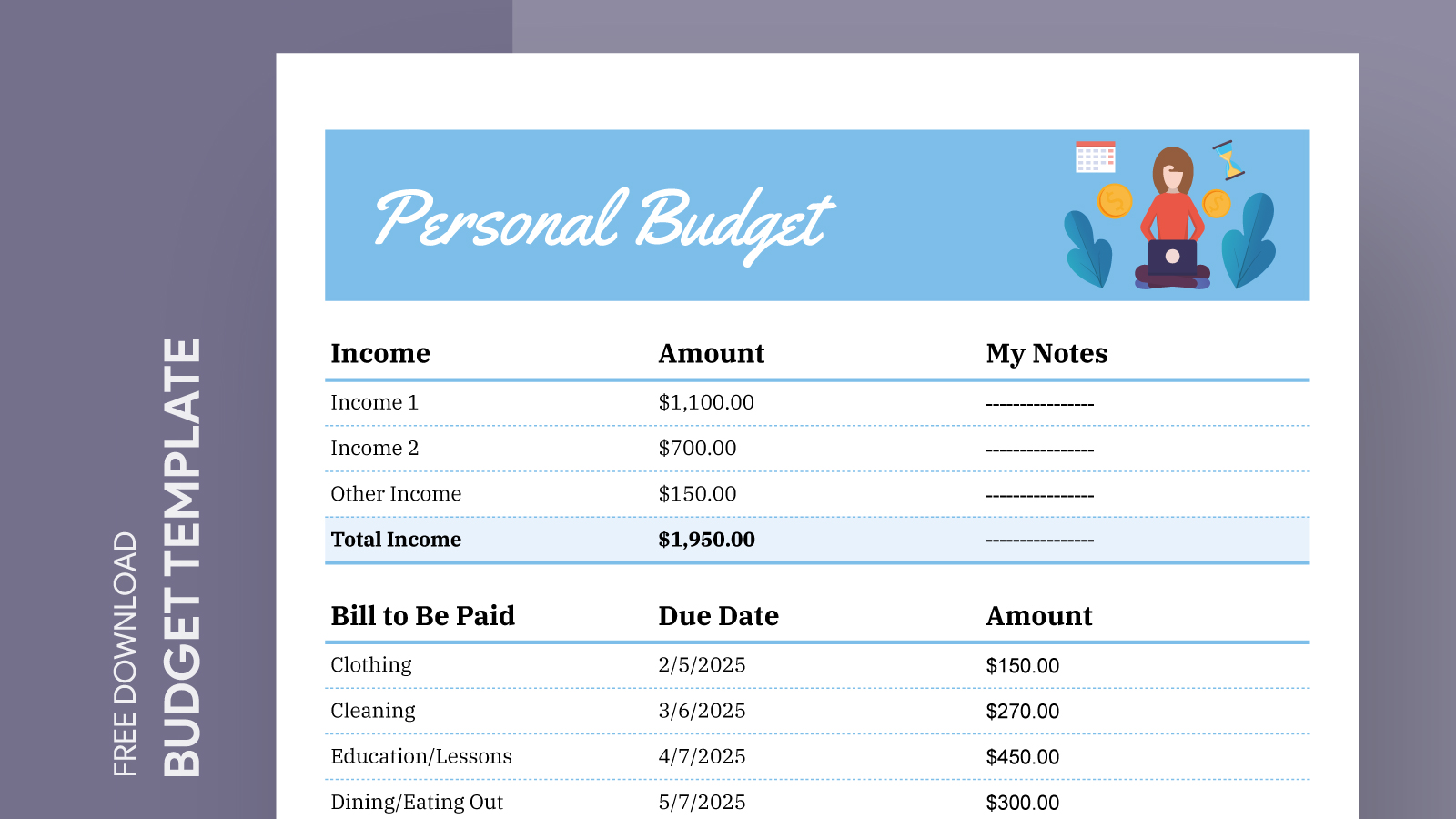 personal finance budget spread sheet template word