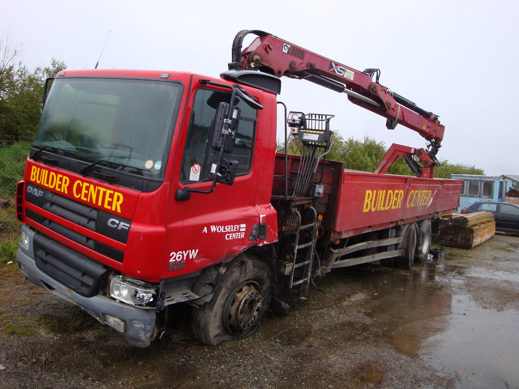 close builders merchant lorry truck mounted hydraulic crane