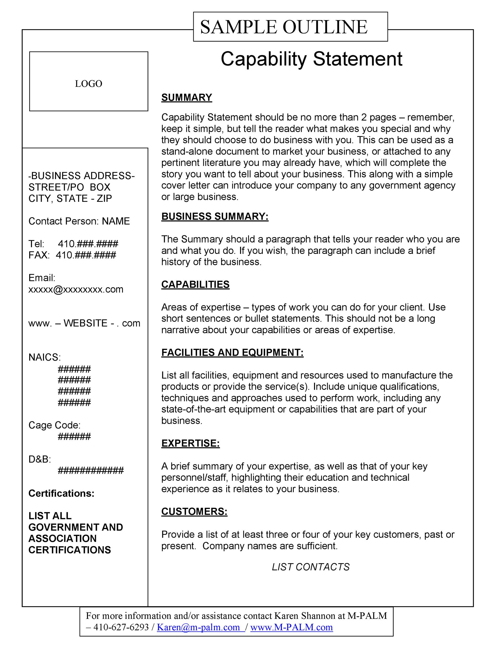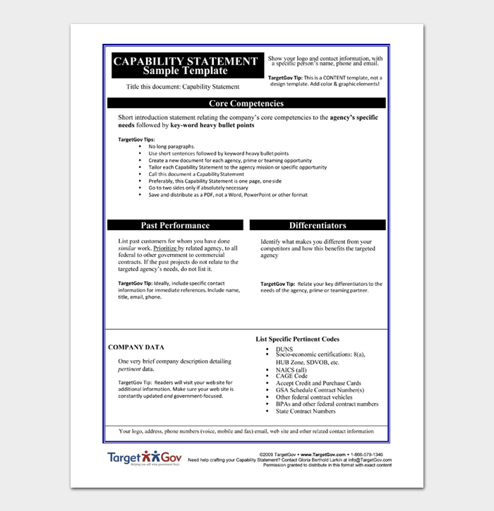 printable capability statement templates word