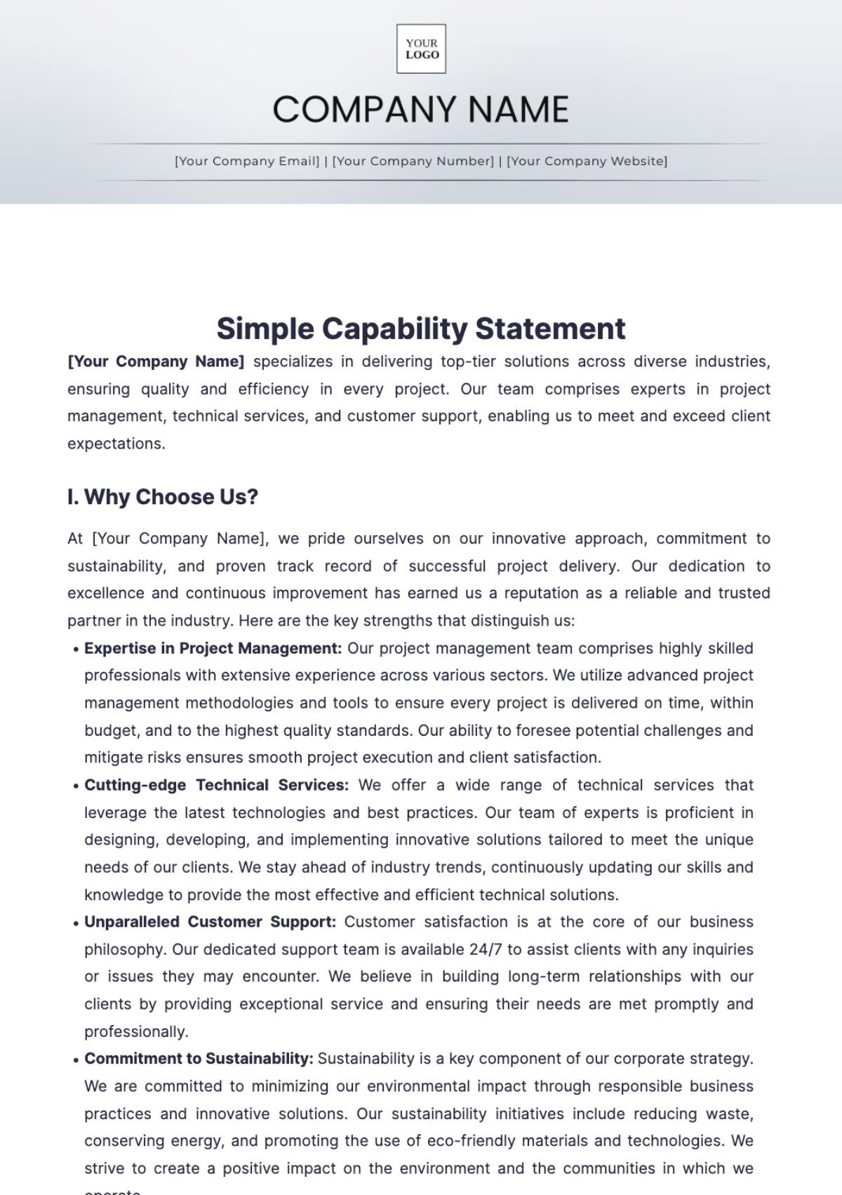 Jika kamu sedang mencari Capability Statement, maka anda berada di halaman yang tepat. Kami menyediakan aneka Capability Statement yang bisa anda pesan online. Silakan hubungi kami via +6282245078486, jangan lupa sertakan juka gambar yang diinginkan.