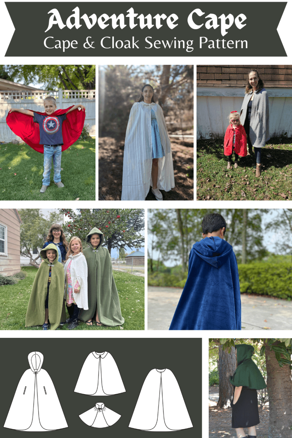 sewing pattern halloween costume cape length options cloak