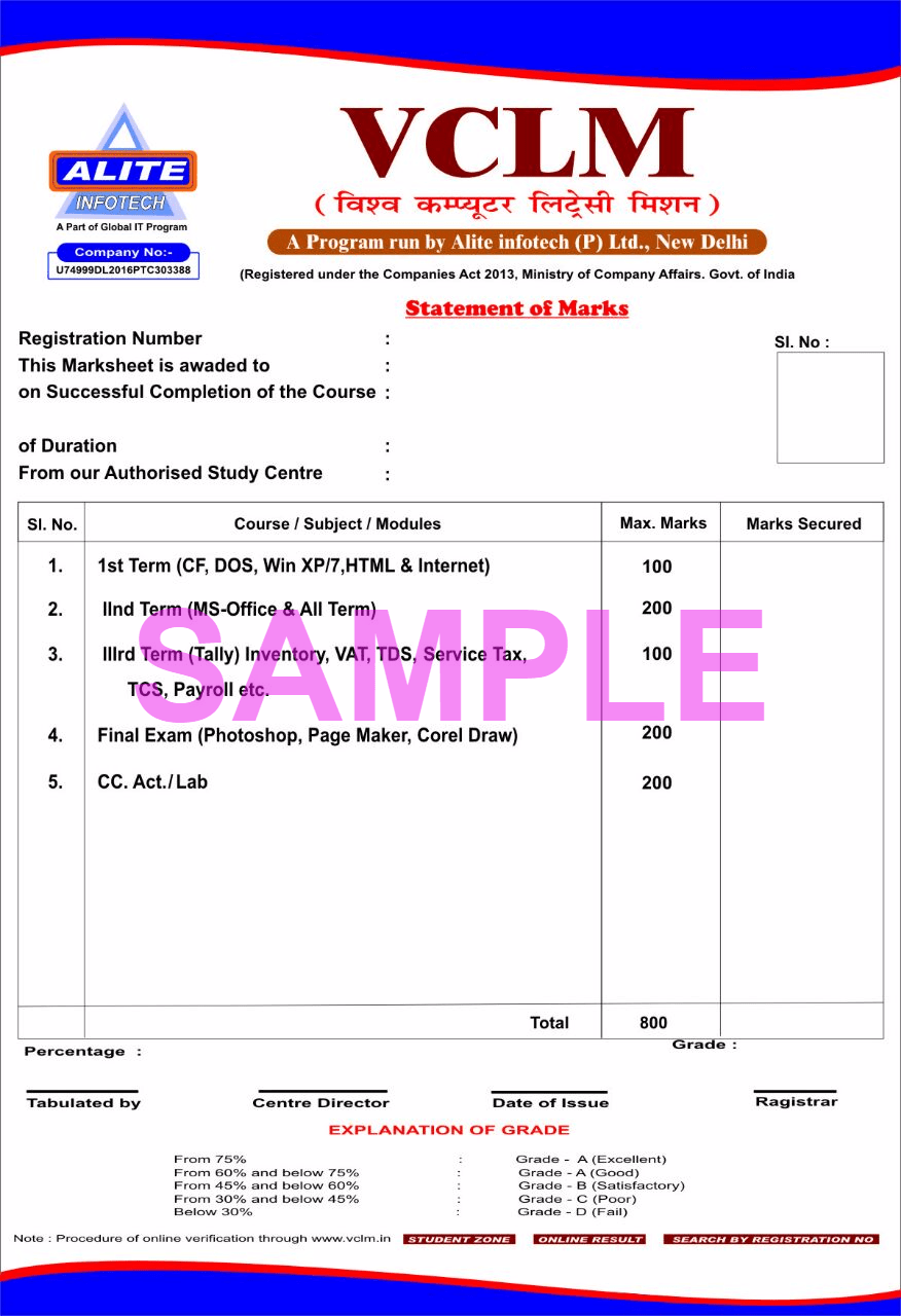 Berbagai Contoh Certificate Marksheet