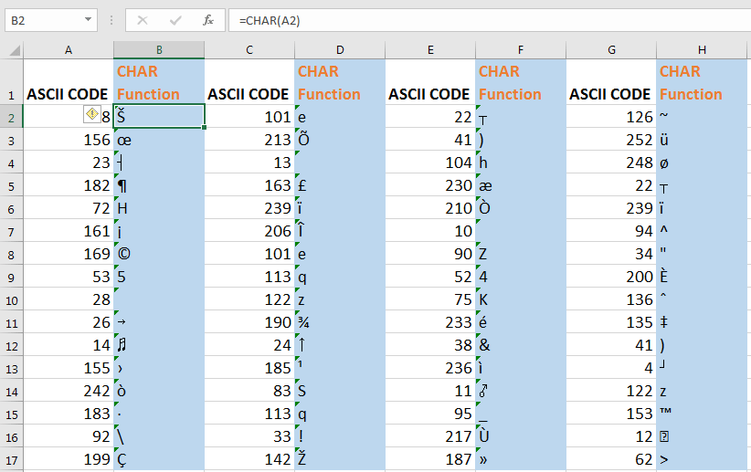 Berbagai Contoh Character Excel