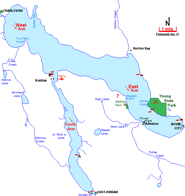 east arm lake charlevoix lake map charlevoix county michigan fishing