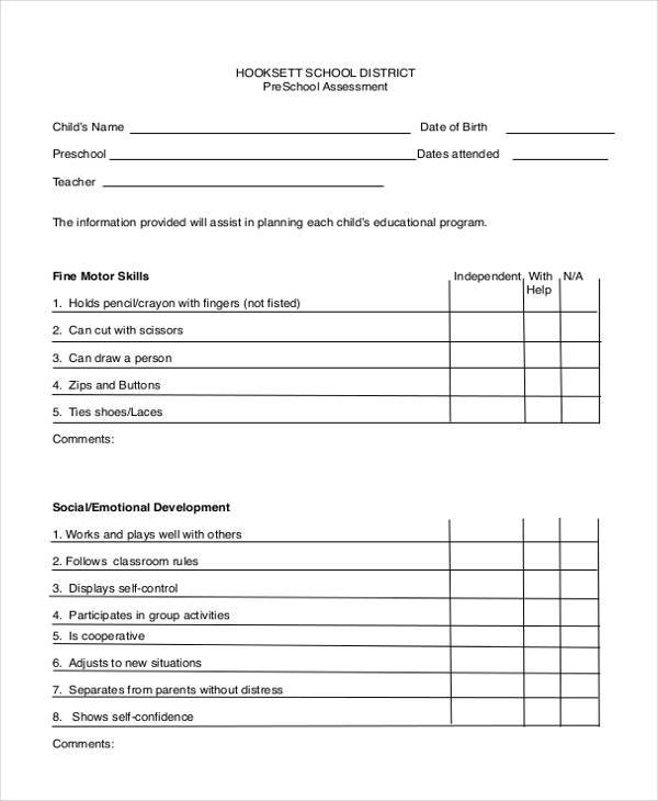 child assessment forms daycare printable printable forms