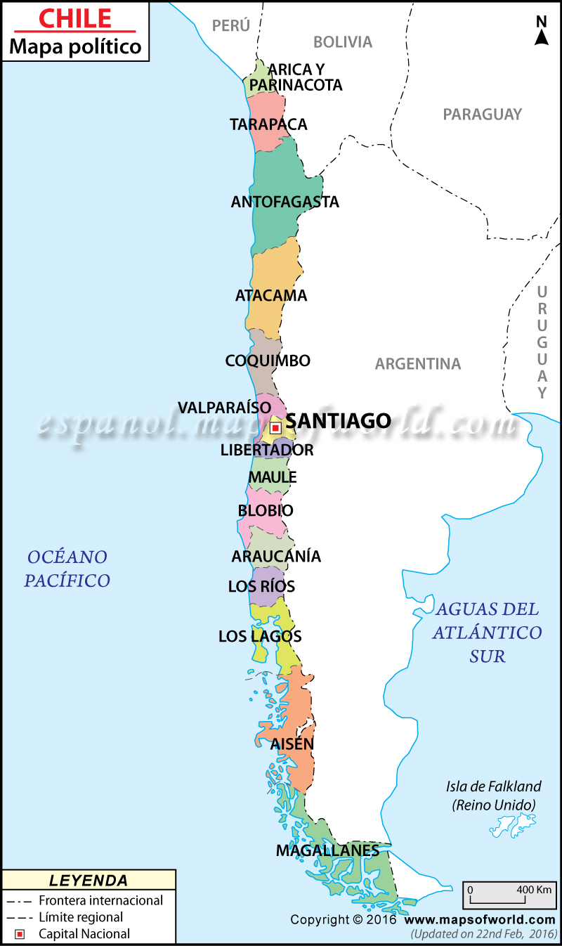 mapa politico de chile actualizado sus regiones