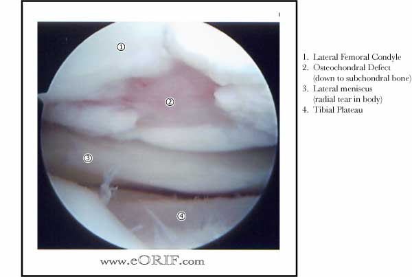 arthroscopic image traumatic full thickness chondral defect