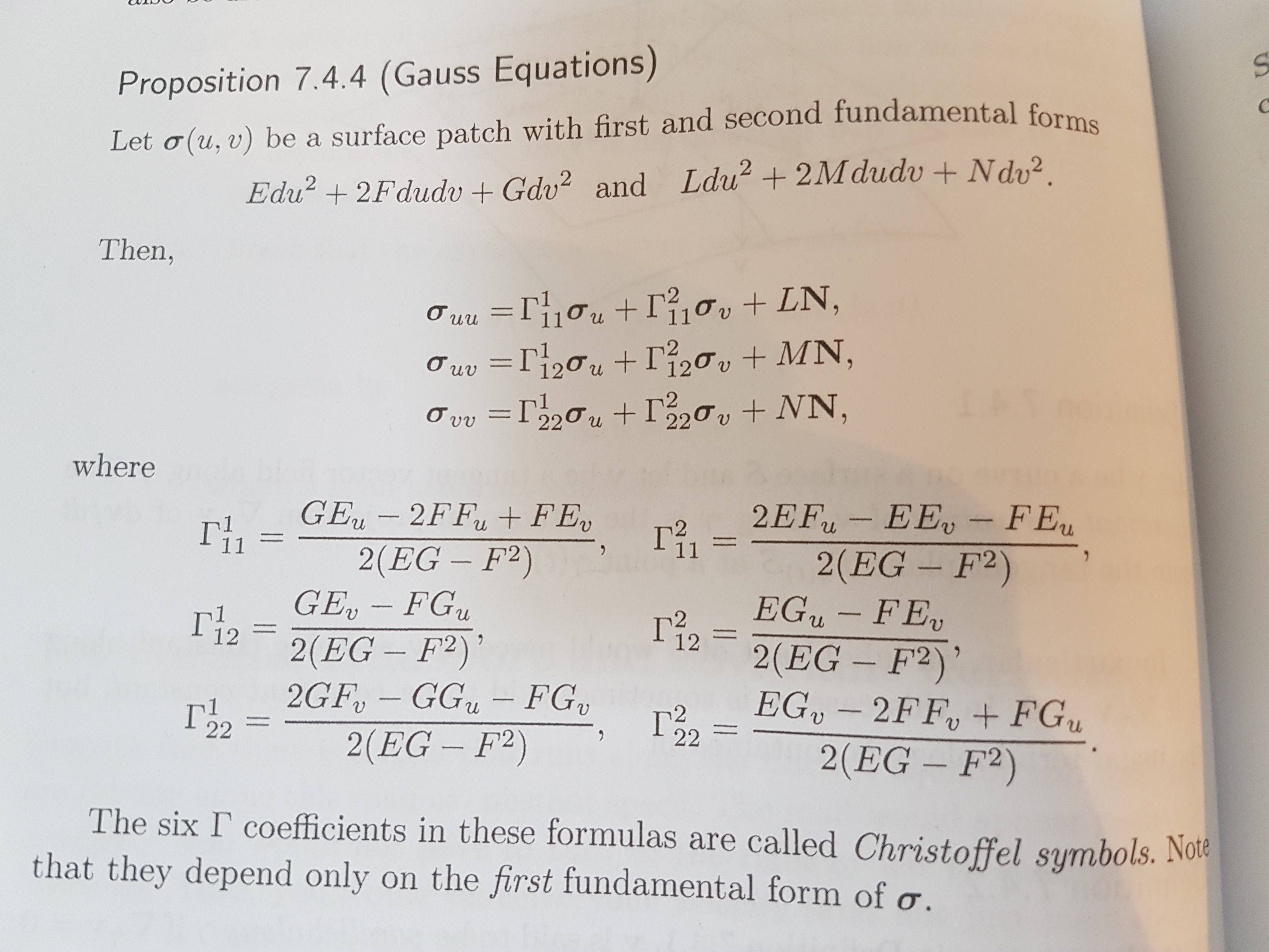 differential geometry fundamental form christoffel symbols