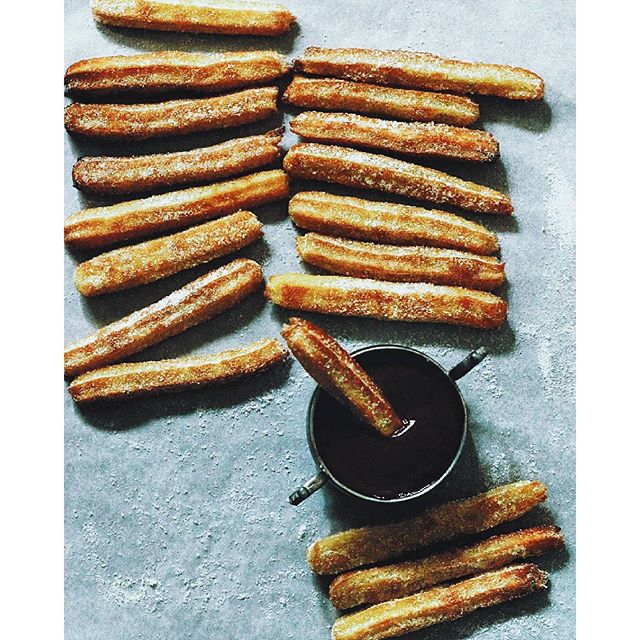 handmade churros cinnamon sugar dark chocolate dip oriton