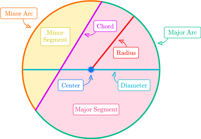 parts circle illustration segment radius diameter tangent