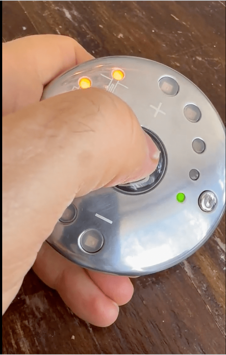 handheld blinking circular gadget hes promoting rwhatisthisthing