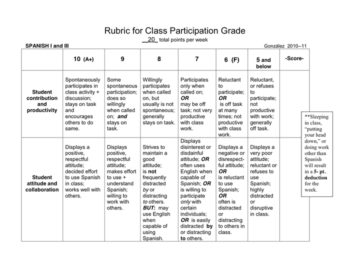 Berbagai Contoh Class Rubric