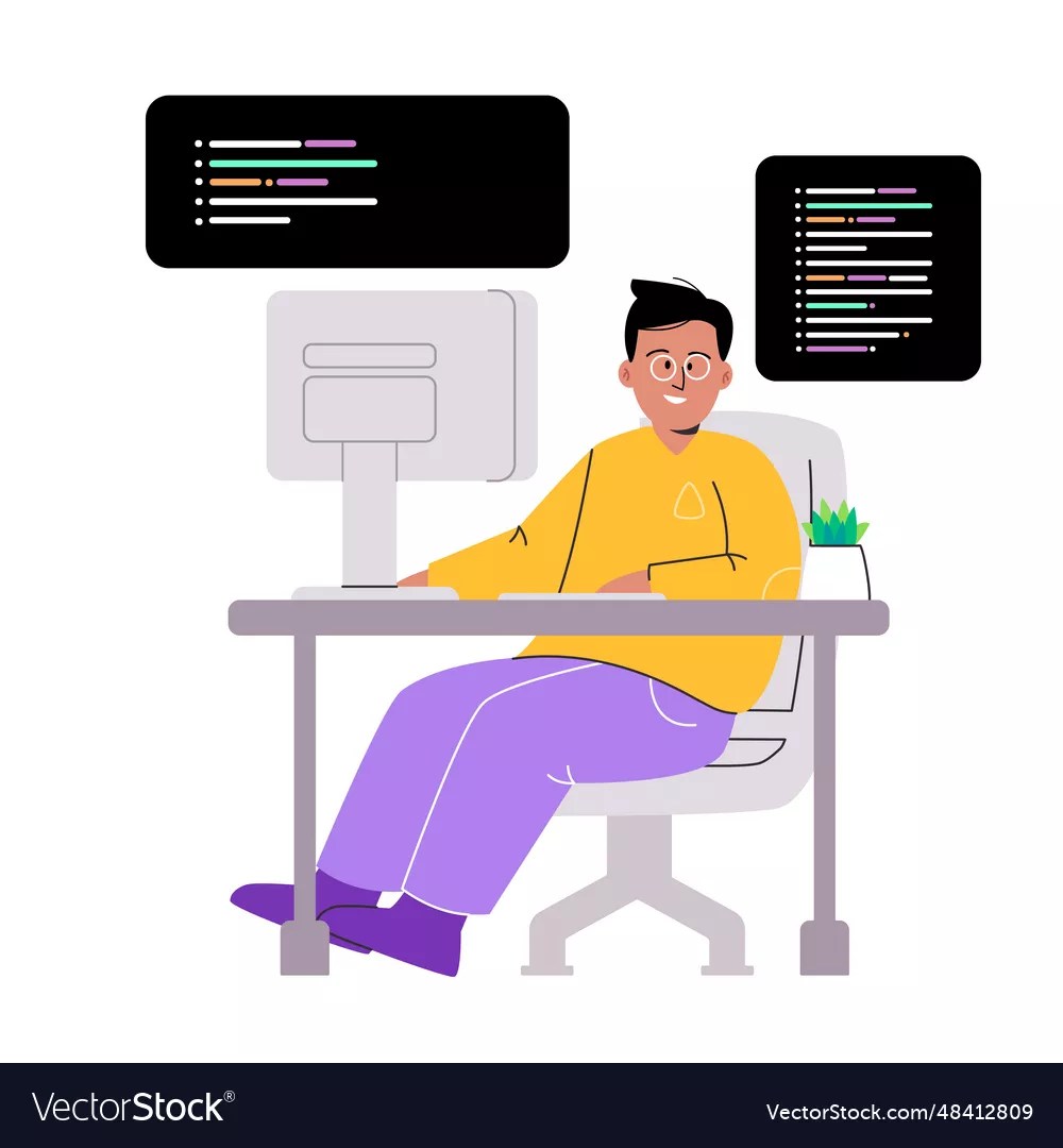 man working coding script code programmer drawing vector image