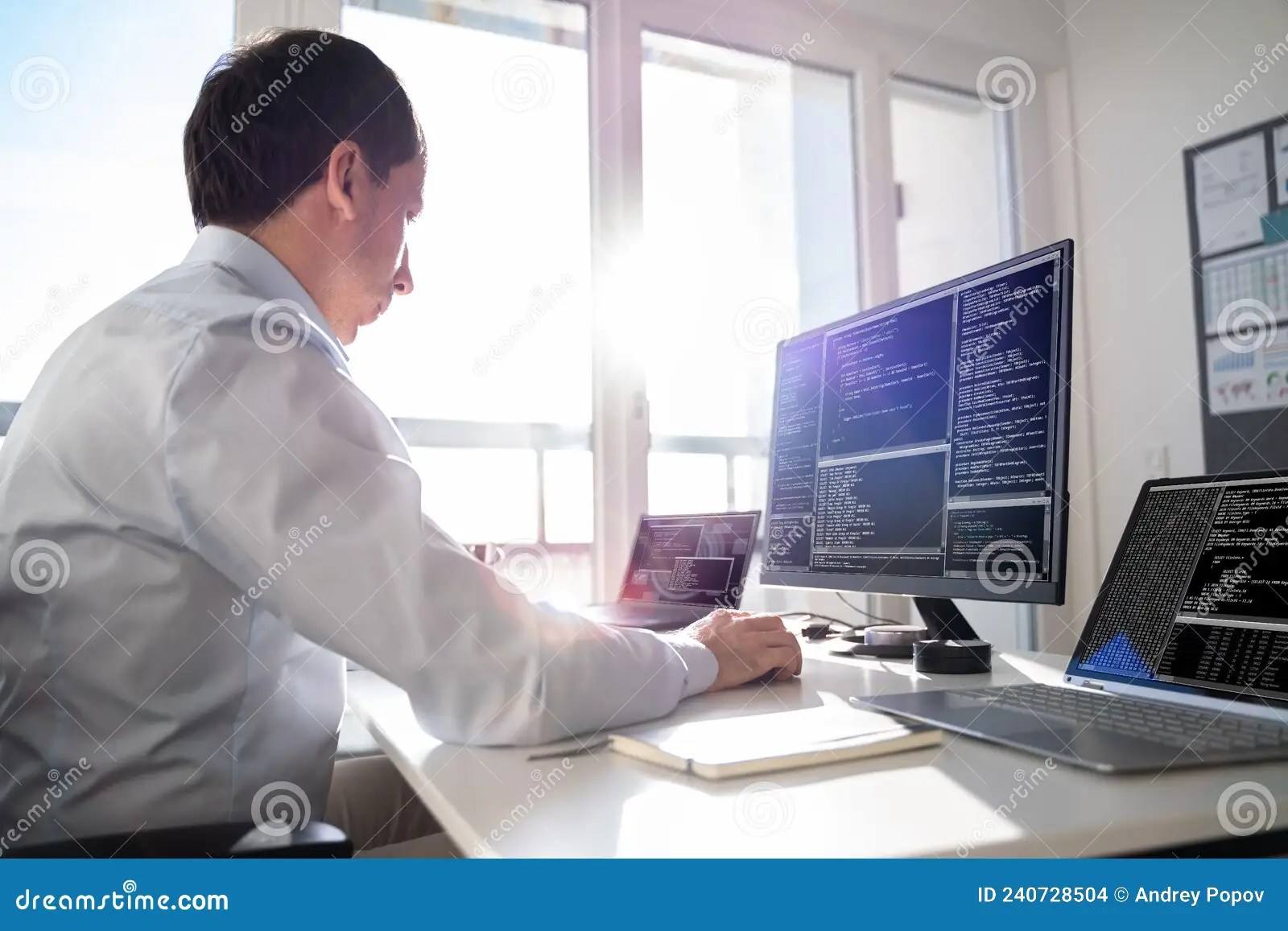 programmer coder office desk stock photo image sitting