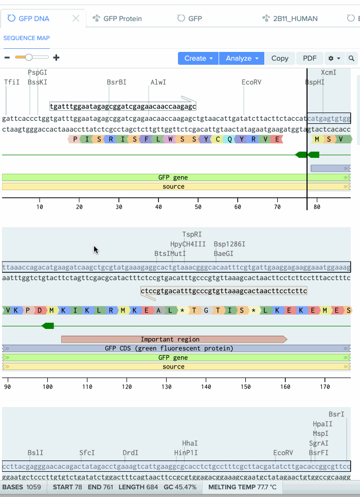 silico codon optimisation cloning outputs showing graphical
