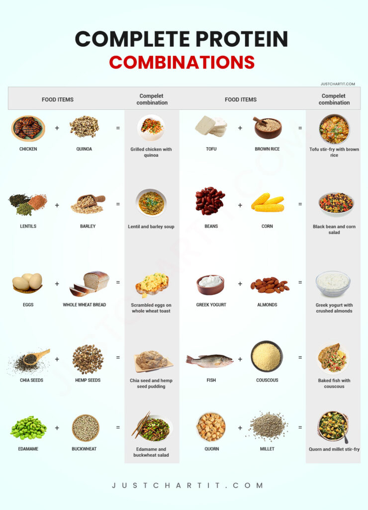 complete protein combinations chart ideal combinations comparison