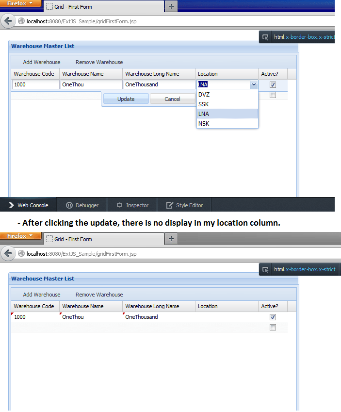 javascript comboxbox editable grid stack overflow