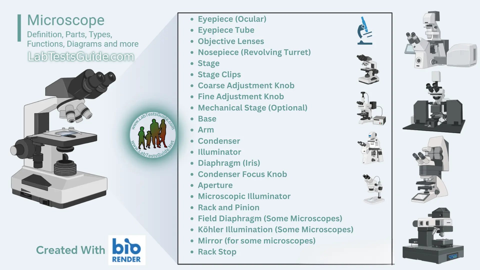 microscope structure types functions parts diagrams detail
