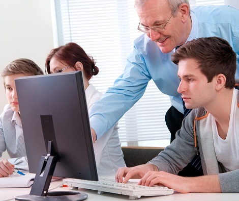 computer science teacher supervises execution programming task