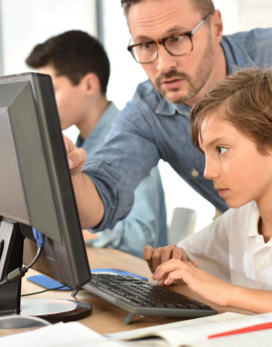 teacher teaches students computer psd high quality