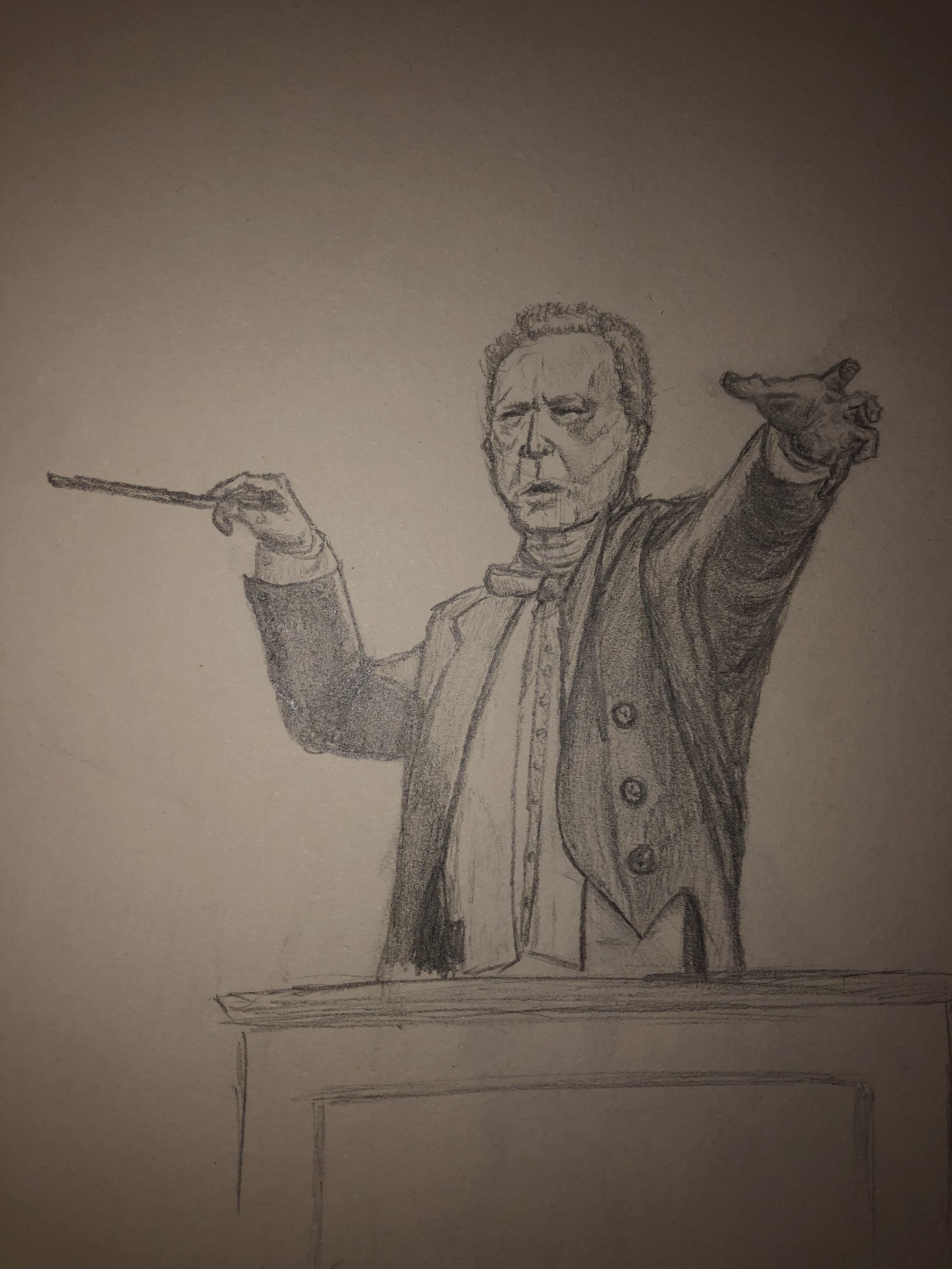 premium photo musical conductor hands ink black white drawing