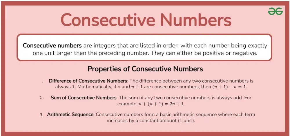 consecutive numbers properties formulas differences examples