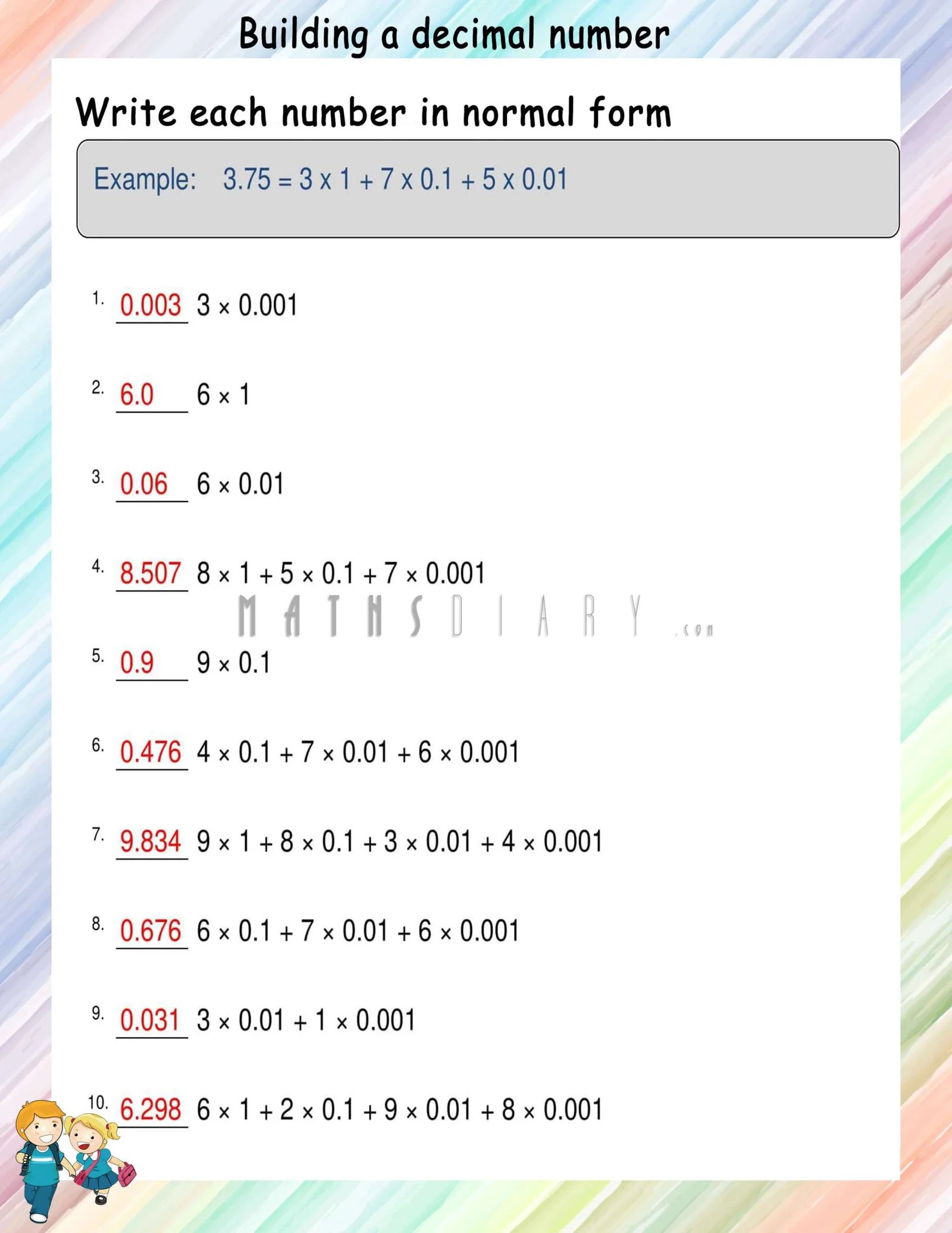 build decimal numbers math worksheets mathsdiarycom