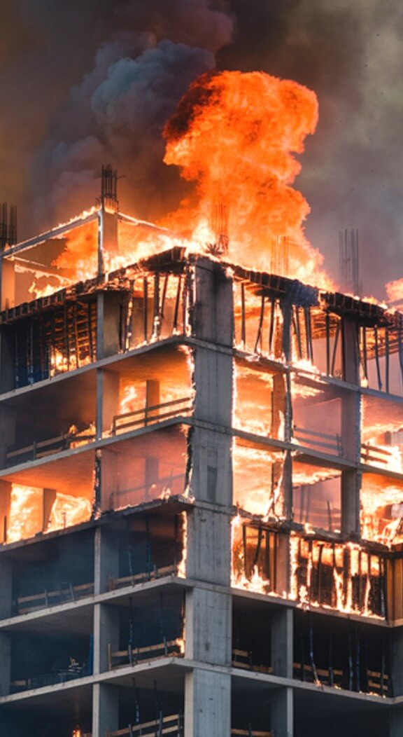 fire construction site unfinished multi storey reinforced