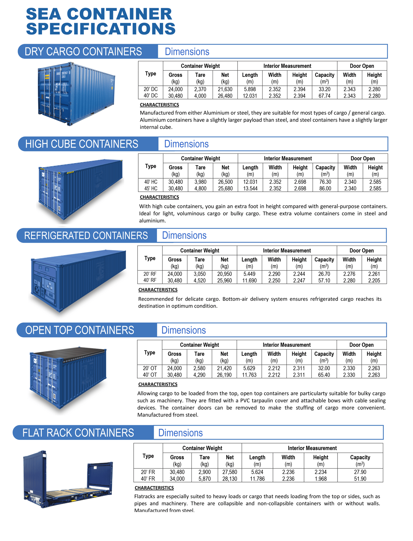 shipping container sizes dimensions word template