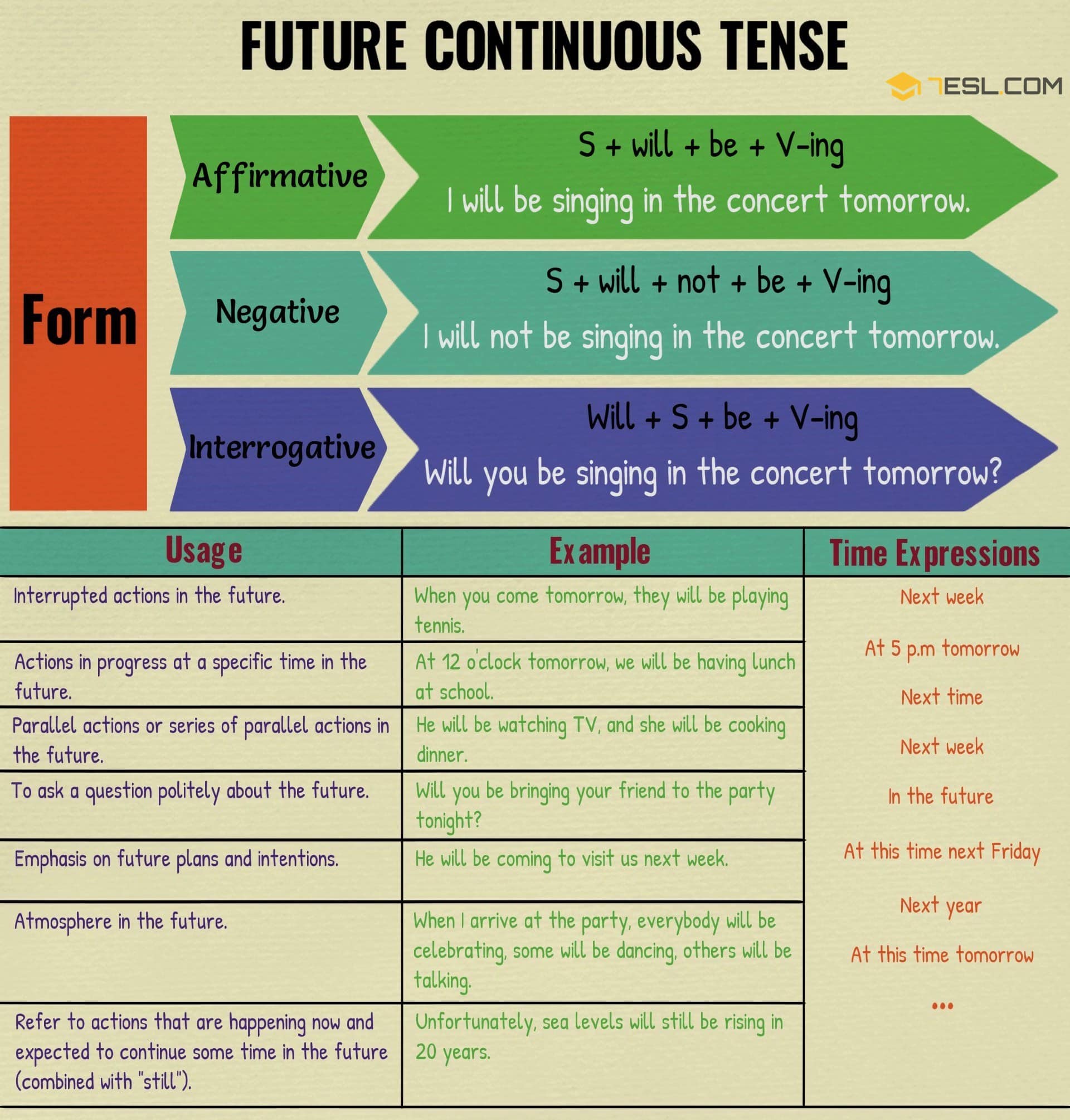 future continuous tense definition rules examples esl