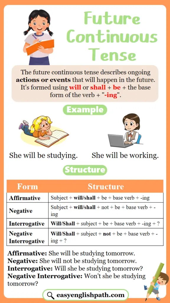future continuous tense examples rules usage englishan