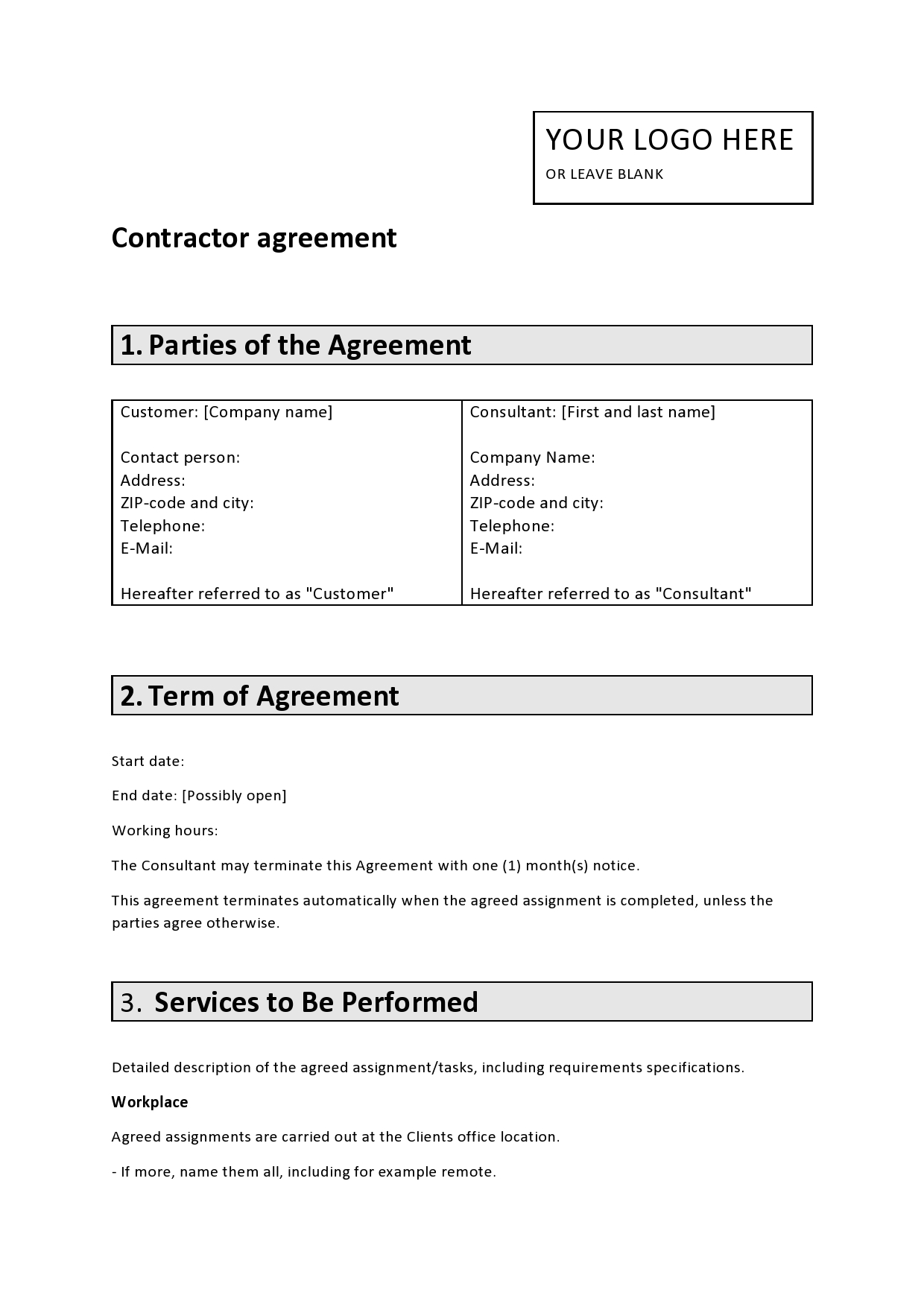 editable business contract contractor contract template printibale