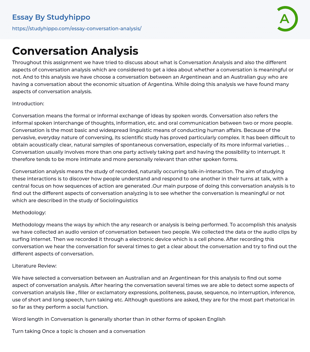 Jika kamu sedang mencari Conversation Analysis, maka anda berada di halaman yang tepat. Kami menyediakan aneka Conversation Analysis yang bisa anda pesan online. Silakan hubungi kami via +6282245078486, jangan lupa sertakan juka gambar yang diinginkan.