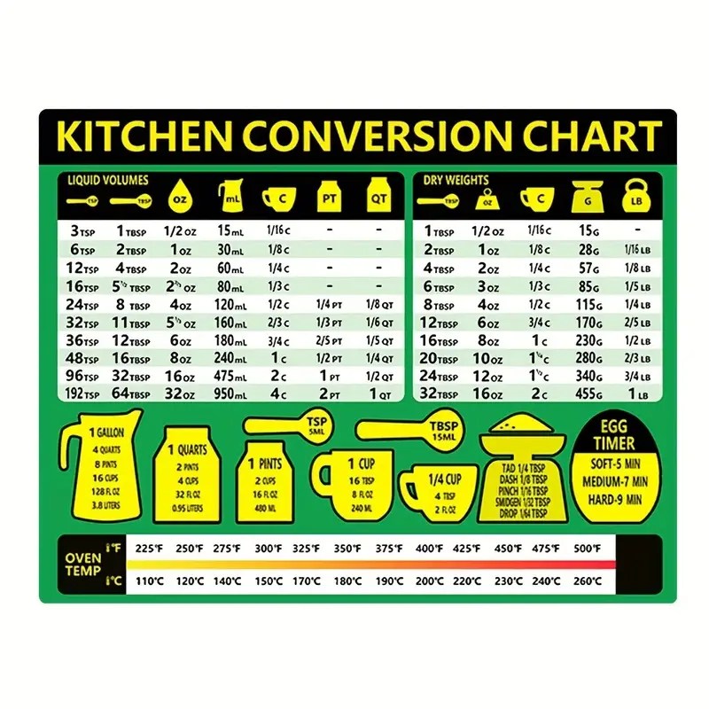 kitchen conversion chart magnet measurement sheet temu slovenia