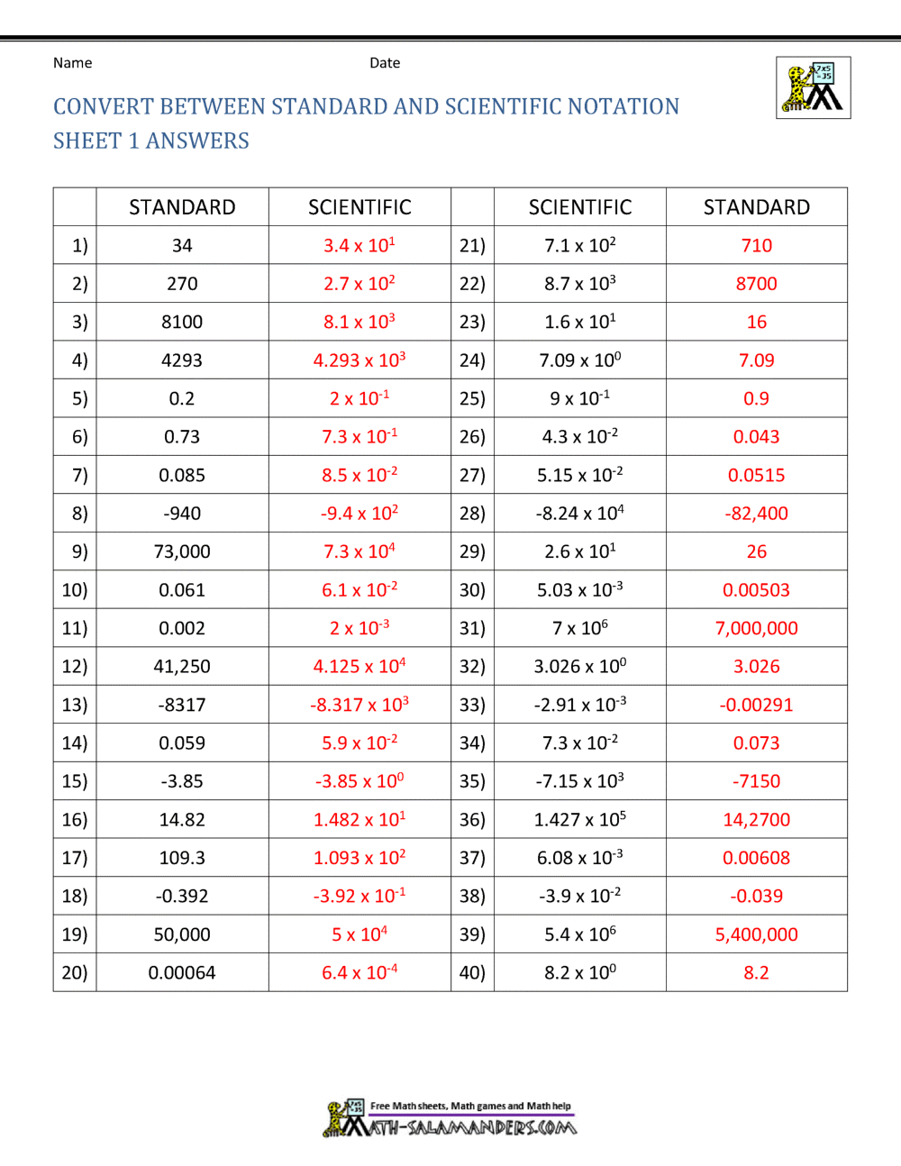 standard notation scientific notation support page worksheets library