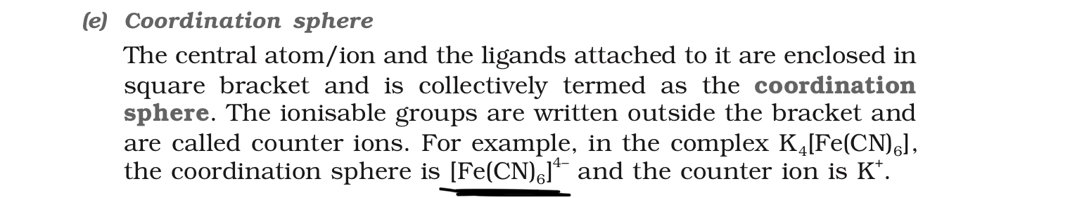 coordination entity coordination sphere constitutes central