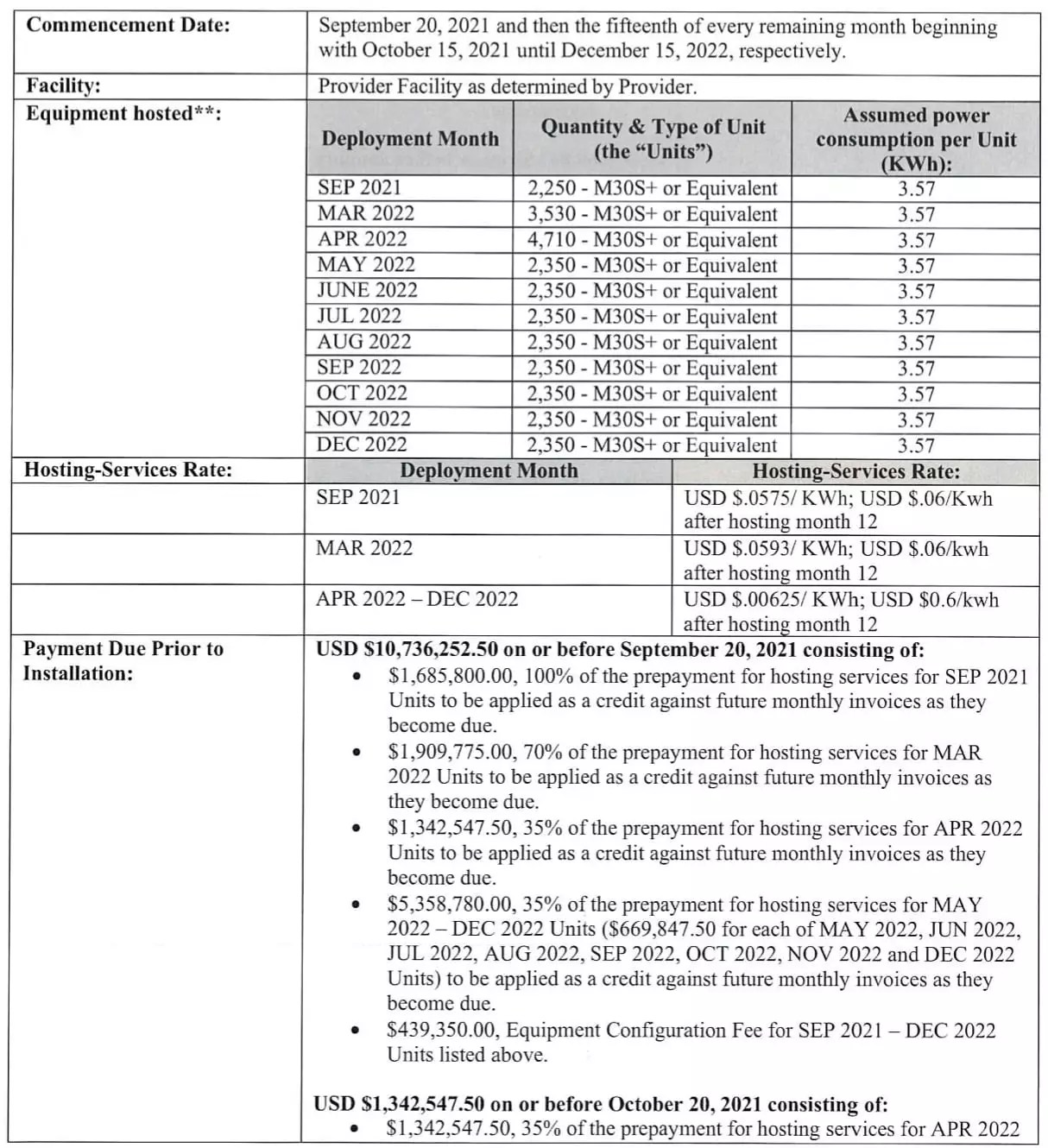 celsius purchase core scientific mining facility part