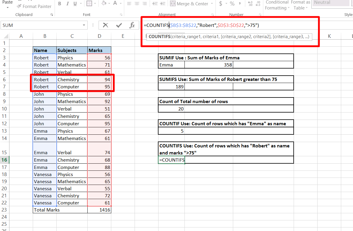 Berbagai Contoh Countifs