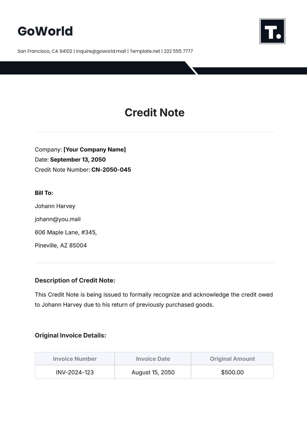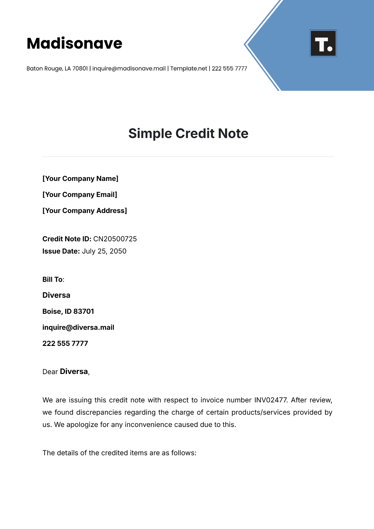 Berbagai Contoh Credit Note