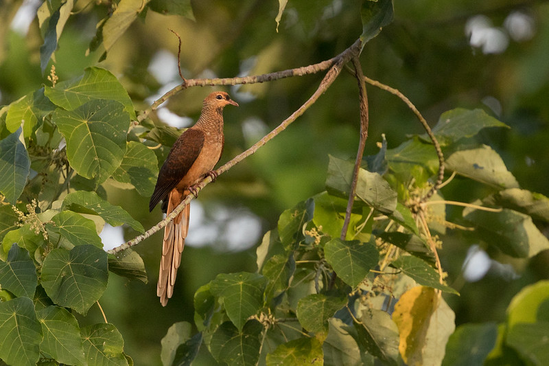 brown cuckoo dove spectacular long tail feathers perching
