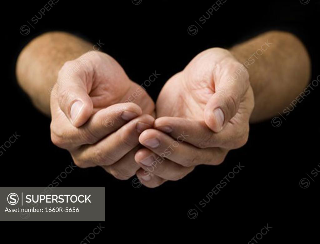 cupped hands front view cupped hands man palms held